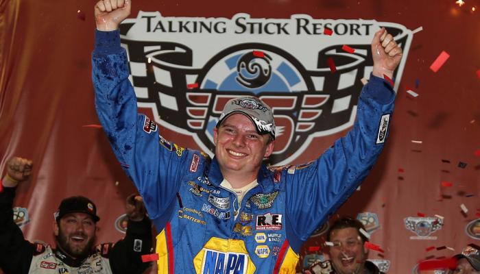 Custer is just 16 years-old and won the Talking Stick Resort 75, NASCAR’s K&N Pro Series West season opener from the pole position. This is his second pole in K&N West to match the two he has in K&N East. His first challenge came from three-time Phoenix winner Greg Pursley and then from a hard-charging Brennan Newberry with a green-white-checkered finish.