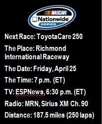 This weekend, Sadler will be competing in front of a hometown crowd at Richmond International Raceway, which is about 60 miles away from where he grew up. In 21 Nationwide starts at the short track, Sadler has eight top-ten finishes, including a runner-up performance in 2005.