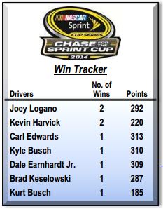 Keselowski won at Las Vegas Motor Speedway and is all but assured a spot in the Chase – presuming there aren’t more winners than Chase spots – an unlikelihood.