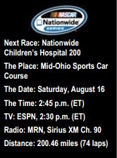 Ten NASCAR Nationwide Series drivers will run special paint schemes this weekend in the Nationwide Children’s Hospital 200 at Mid-Ohio, recognizing current patients from the Nationwide Children’s Hospital. The following teams and drivers have partnered with the hospital to feature patient champions during the Nationwide Children’s Hospital 200 race weekend: