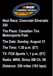 Canada will be well represented in the Chevrolet Silverado 250 as native drivers Alex Tagliani, Ray Courtemanche Jr., Cameron Hayley and Andrew Ranger make their Camping World Truck Series dèbuts on their home soil.