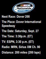 Milestone Watch: JR Motorsports driver Regan Smith will attempt to post his 50th NASCAR Nationwide Series top-10 career finish this weekend. Smith has made nine starts at Dover posting two top-tens and an average finish of 19.2.
