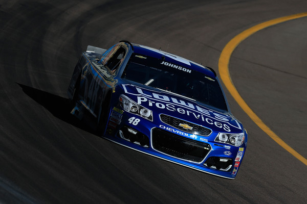 Jimmie Johnson, driver of the #48 Lowe’s Pro Services Chevrolet, drives during practice for the NASCAR Sprint Cup Series Good Sam 500 at Phoenix International Raceway on March 12, 2016 in Avondale, Arizona. Photo – Chris Trotman/Getty Images