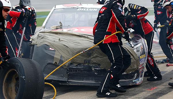 Additionally, teams will not be allowed to use sheet metal other than that already on the car to effect repairs. NASCAR is developing a list of required parts that may be brought to pit road—a rear bumper cover, for example.
