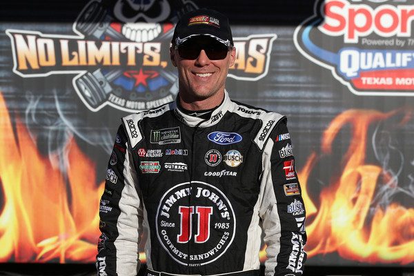 Kevin Harvick, driver of the #4 Jimmy John’s Ford, poses in Victory Lane after qualifying for pole position for the Monster Energy NASCAR Cup Series O’Reilly Auto Parts 500 at Texas Motor Speedway on April 7, 2017 in Fort Worth, Texas. Photo – Chris Graythen/Getty Images