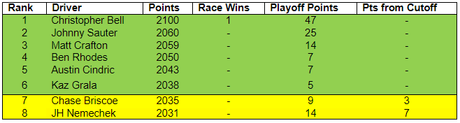 Following the opening Camping World Truck Series Playoffs race at New Hampshire Motor Speedway, below is an updated Playoffs leaderboard: