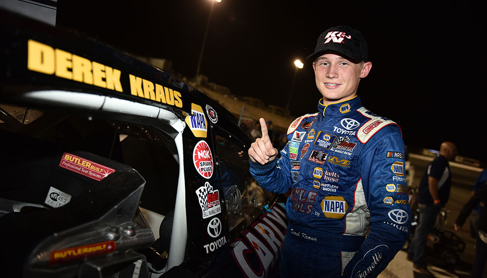 “That Meridian race was actually going through my mind those last 30 laps,” Kraus said in Victory Lane next to his No. 19 Carlyle Tools Toyota. “But it’s been a really good night with getting Rookie of the Year and getting a race win, my first race win. That’s really great for me and my career, and will help boost me into next season.”