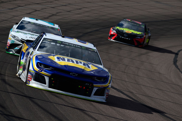 Chase Elliott, the driver of the #9 NAPA Auto Parts Chevrolet, leads a pack of cars during the Monster Energy NASCAR Cup Series TicketGuardian 500 at ISM Raceway on March 11, 2018, in Avondale, Arizona. Photo – Robert Laberge/Getty Images