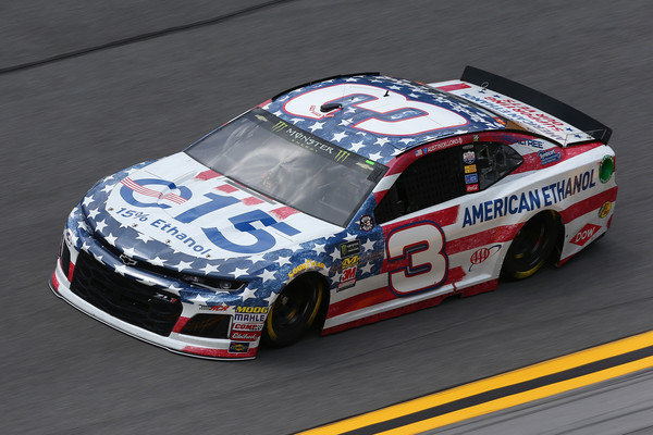 Austin Dillon, driver of the #3 American Ethanol e15 Chevrolet, practices for the Monster Energy NASCAR Cup Series Coke Zero Sugar 400 at Daytona International Speedway on July 5, 2018 in Daytona Beach, Florida. Photo – Sarah Crabill/Getty Images