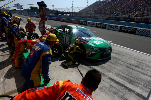 Kyle Busch, the driver of the #18 M&M’s Crunchy Mint Toyota, pits during the Monster Energy NASCAR Cup Series GoBowling at The Glen at Watkins Glen International on August 5, 2,018 in Watkins Glen, New York. Photo – Sarah Crabill/Getty Images