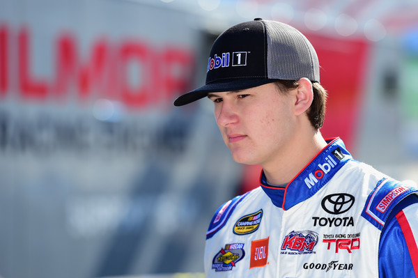 MARTINSVILLE, VA – MARCH 26: John H. Nemechek, the driver of the #8 Fleetwing Chevrolet, poses with the winner’s decal on his truck in Victory Lane after winning the weather-delayed NASCAR Camping World Truck Series Alpha Energy Solutions 250 at Martinsville Speedway on March 26, 2018, in Martinsville, Virginia. Photo by Sarah Crabill/Getty Images