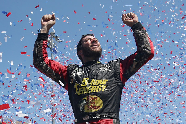 Martin Truex Jr., the driver of the #78 5-hour ENERGY/Bass Pro Shops Toyota, celebrates in victory lane after winning the Monster Energy NASCAR Cup Series Toyota/Save Mart 350 at Sonoma Raceway on June 24, 2018, in Sonoma, California. Photo – Chris Graythen/Getty Images