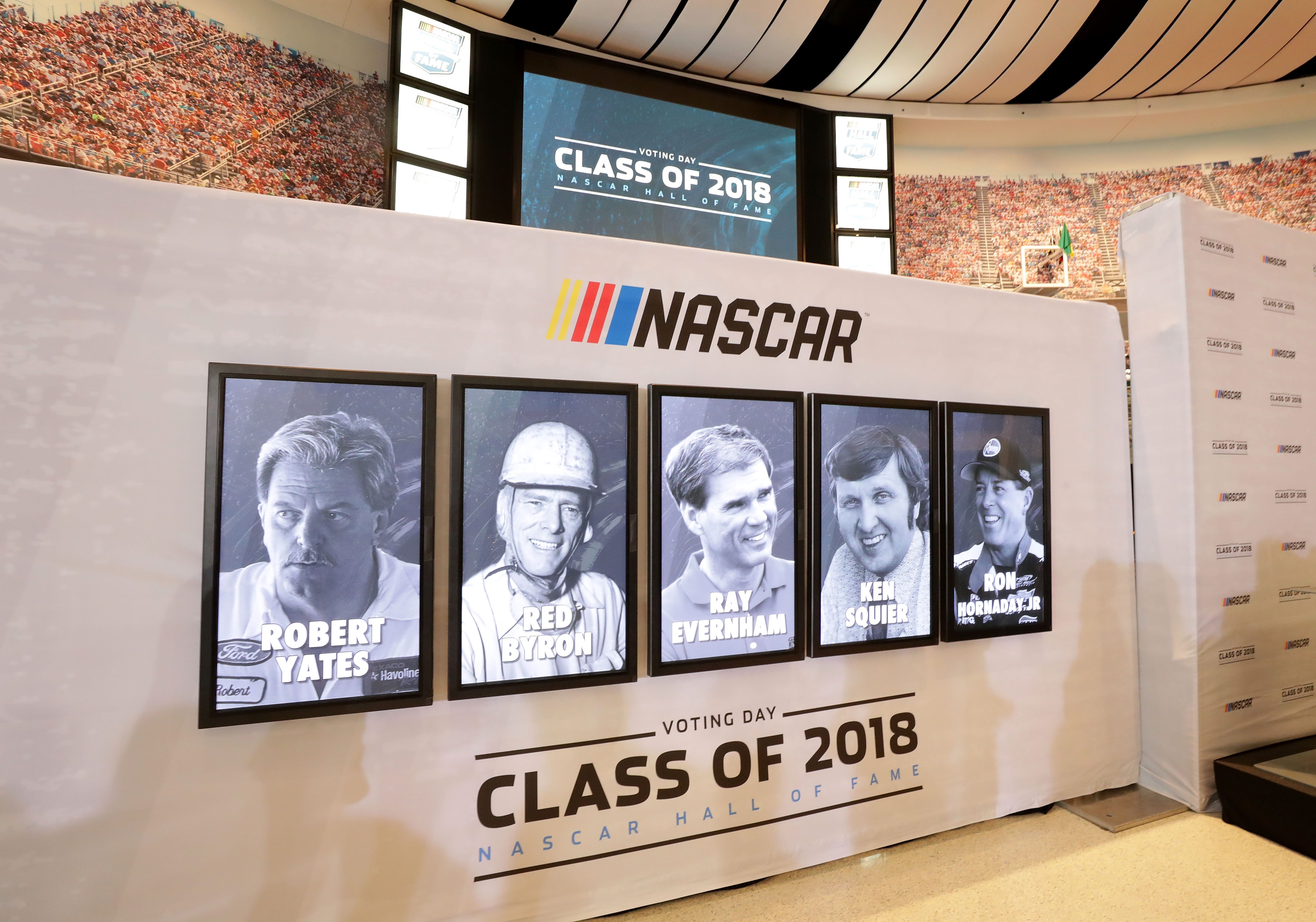 CHARLOTTE, NC – MAY 24: Robert Yates, Red Byron, Ray Evernham, Ken Squire and Ron Hornaday Jr. are announced to the Hall of Fame during the NASCAR Hall of Fame Voting Day at NASCAR Hall of Fame on May 24, 2017 in Charlotte, North Carolina. Photo by Streeter Lecka/Getty Images