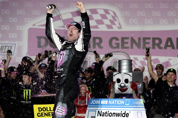 - Kyle Busch, driver of the #54 Monster Energy Toyota, celebrates in Victory Lane after winning the NASCAR Nationwide Series Dollar General 300 at Charlotte Motor Speedway on October 11, 2013