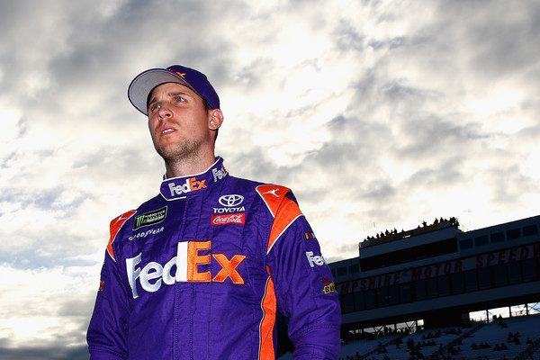 Denny Hamlin, driver of the #11 FedEx Ground Toyota, stands on the grid during qualifying for the Monster Energy NASCAR Cup Series ISM Connect 300 at New Hampshire Motor Speedway on September 22, 2017, in Loudon, New Hampshire. Photo – Tim Bradbury/Getty Images