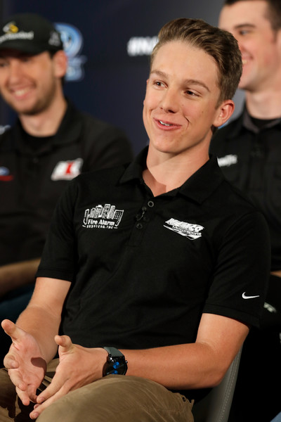 John Hunter Nemechek shares a laugh with the media during the 2017 NASCAR Camping World Truck Series Playoffs Media Day on September 20, 2017, in Charlotte, North Carolina. Photo – Bob Leverone/Getty Images