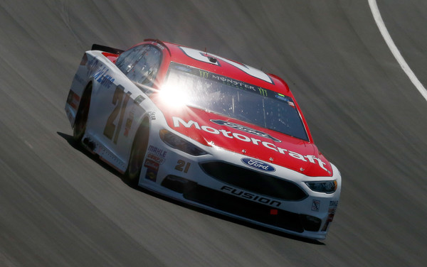 Ryan Blaney, driver of the #21 Motorcraft/Quick Lane Tire & Auto Center Ford, races during the Monster Energy NASCAR Cup Series O’Reilly Auto Parts 500 at Texas Motor Speedway on April 9, 2017 in Fort Worth, Texas. Photo – Jonathan Ferrey/Getty Images