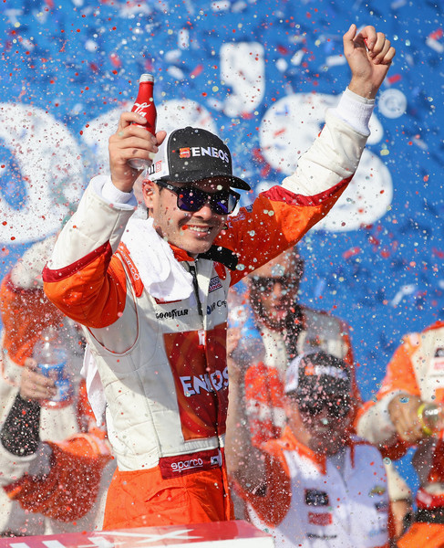 Kyle Larson, the driver of the #42 ENEOS Chevrolet, celebrates after winning the NASCAR Xfinity Series Overton’s 300 at Chicagoland Speedway on June 30, 2018, in Joliet, Illinois Photo – Jonathan Daniel/Getty Image