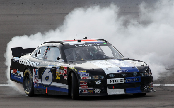 Sam Hornish Jr., driver of the #12 Wurth Ford, celebrates in Victory Lane after winning the NASCAR Nationwide Series Sam’s Town 300 at Las Vegas Motor Speedway on March 9, 2013